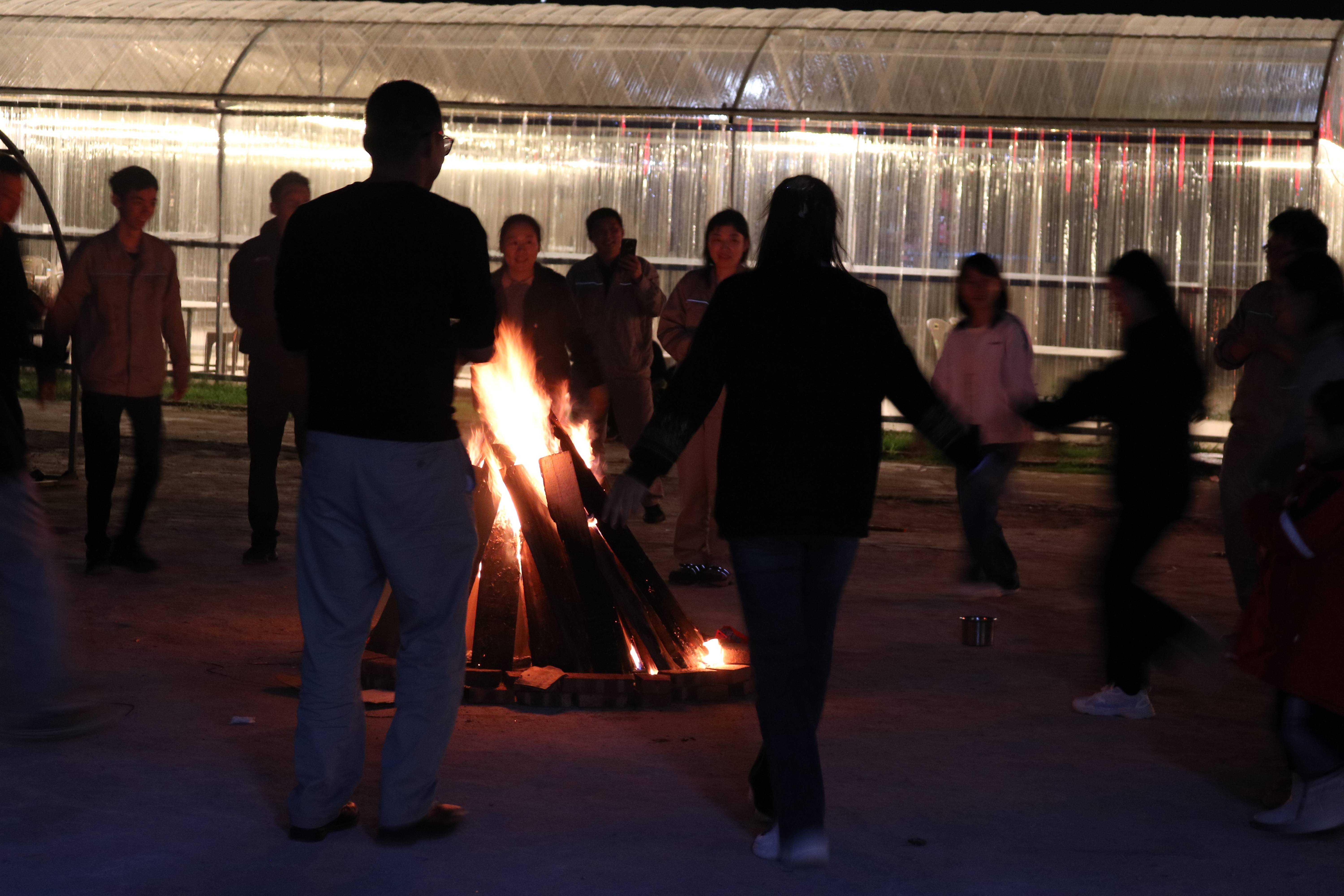 傍晚时分,活动现场香气四溢,工会精心准备了自助烧烤,员工们围坐在一起亲手烹制美食,共同切蛋糕,互道生日祝福,畅谈工作与生活。随着夜幕降临,篝火熊熊燃起,大家手拉手围绕火堆载歌载舞,气氛热烈欢快。压轴环节的烟花表演将活动推向高潮,璀璨的烟花照亮了每一位员工的笑脸,现场掌声与欢呼声此起彼伏。