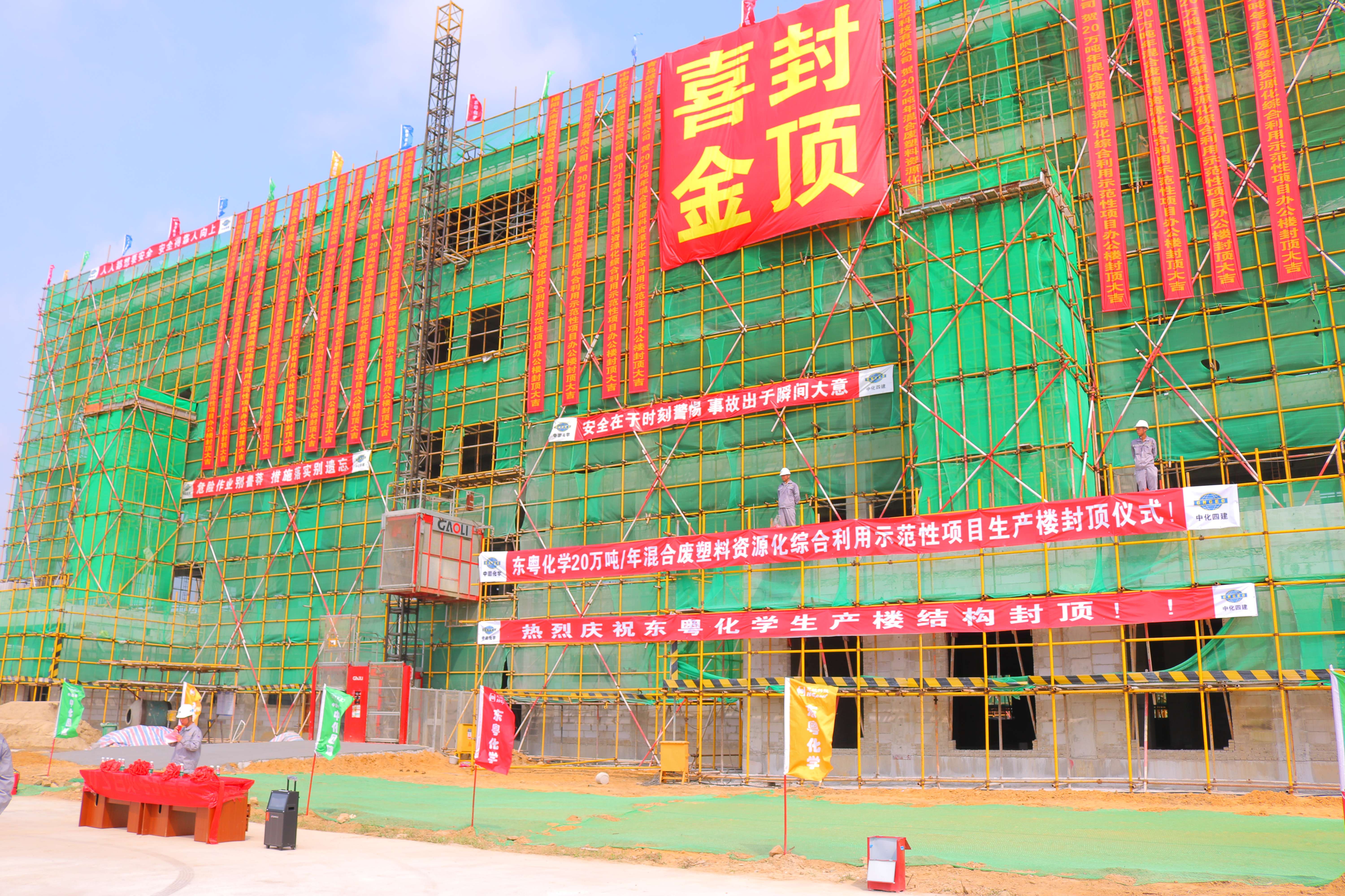 8月8日,随着最后一段顶板混凝土完成浇筑,20万吨/年混合废塑料资源化综合利用示范性项目办公楼结构喜封金顶,标志着项目阶段性节点顺利完成,为年底建成投产奠定了坚实基础。