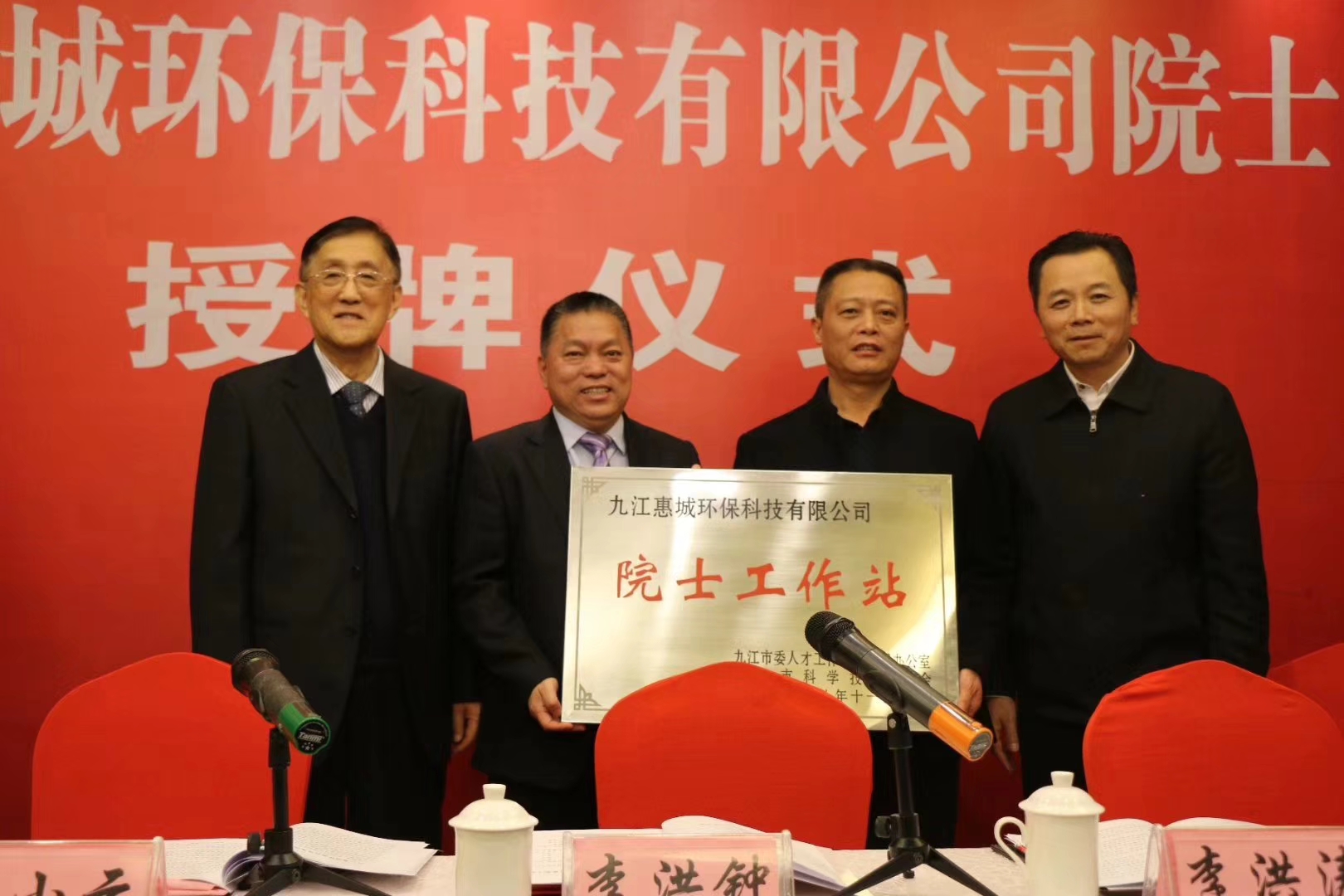 12月17日上午,九江惠城环保科技有限公司院士工作站授牌仪式在九江市瑞昌信华酒店隆重举行。中国科学院院士、英国皇家化学会会士李洪钟,九江市委常委、组织部长李洪涛,九江市科协党组书记、主席周光灿,九江市环保局副局长时小波,瑞昌市委书记郭小云,瑞昌市委副书记陈琪,青岛惠城环保科技股份有限公司、九江惠城环保科技有限公司董事长张新功,中国石油大学(华东)、九江学院等高校专家学者及当地相关企业负责人出席了此次授牌仪式。仪式由瑞昌市委副书记陈琪主持。
