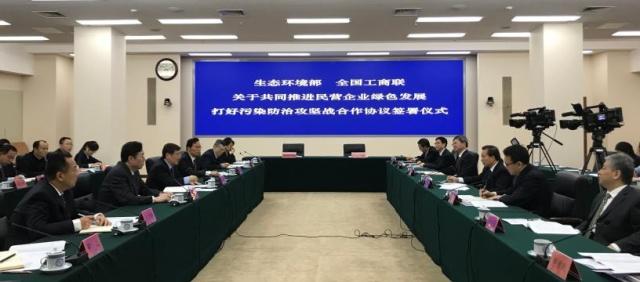 今天,生态环境部和全国工商联签署了“关于共同推进民营企业绿色发展 打好污染防治攻坚战”的合作协议,联合出台《关于支持服务民营企业绿色发展的意见》,将通过健全市场准入机制、完善环境法规标准、规范环境执法行为、强化科技支持服务、完善环境经济政策措施,支持民营企业提高绿色发展水平、营造公平竞争市场环境。